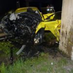 die starke Deformierung des Fahrzeuges wurde der Fahrer eingeklemmt. Die Feuerwehr Vorkloster