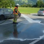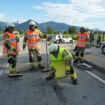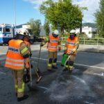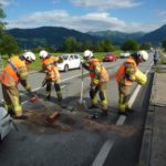 Bei der „Hohen Brücke“ in Wolfurt ereignete sich ein Verkehrsunfall mit vier Fahrzeugen. Ein Fahrzeug wurde dabei so beschädigt, dass diverse Betriebsstoffe austraten. Die Feuerwehr Wolfurt rückte mit dem RLF und LFB an, um die Betriebsmittel zu binden. Nachdem die Straße mit Ölbindemittel und Bioversal gereinigt worden war, konnte die Straße durch die Polizei wieder freigegeben werden.