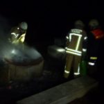 Eine besorgte Passantin rief die Feuerwehr, nachdem sie bemerkte, dass Rauch und Feuerschein am Grillplatz an der Ach sichtbar und niemand in der Nähe der Feuerschale war. In der Grillschale glimmten noch Reste eines Lagerfeuers, das nicht richtig abgelöscht wurde. Die Glut wurde mittels dem „Löscheimer faltbar“ mit Wasser aus der Ach abgelöscht.