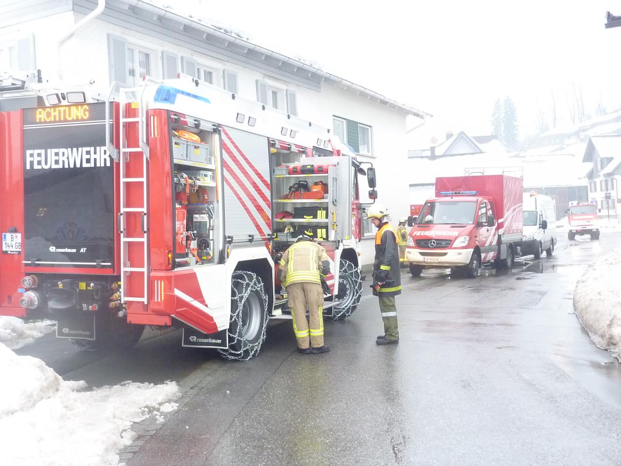 Beim ersten Einsatz im neuen Jahr handelte es sich um einen Wassereintritt in den Keller eines Wohnhauses. Bei der Kontrolle stellte es sich heraus, dass es sich um einen Wasserrohrbruch handelt. Die Feuerwehr Wolfurt hat mittels Tauchpumpen und Nasssauger das Wasser aus dem Keller entfernt. Die Einsatzstelle wurde dem Bauhof Wolfurt übergeben, welcher sich um den Rohrbruch kümmert.