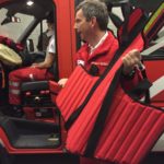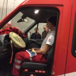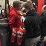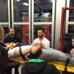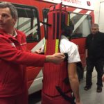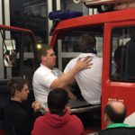 Durch die Mitarbeiter des ÖRK wurden wir durch drei Stationen geleitet, bei denen verschiedenste Dinge gelehrt wurden. Unter anderem gehört dazu die Verwendung des KED-Systems zusammen mit einer Halskrause. Eine weitere Einweisung gab es im Bereich der Personenrettung aus einem LKW mittels Spineboard und Schaufeltrage. Dabei wurde schnell klar, dass die Platzverhältnisse in der Fahrerkabine nicht unterschätzt werden dürfen.