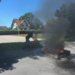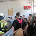 Bei der Station Atemschutz sahen sie, wie man mit der Wärmebildkamera auch in einem komplett verrauchten Raum den Weg findet. Hydraulisches Rettungsgerät war genauso eine Station wie der Steiger, auch hier konnten die Jugendlichen selbst versuchen, was es heißt bei der Feuerwehr zu sein. Die vierte Station war für viele sehr beeindruckend, denn dort konnte selbst mal mit einem Feuerlöscher gelöscht werden und man sah, was passiert, wenn man einem Fettbrand mit Wasser löscht.