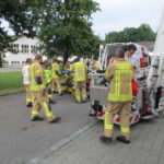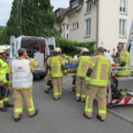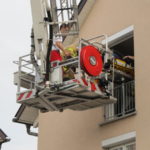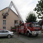 Zum zweiten Mal am heutigen Tag wurden wir mit dem Einsatzstichwort „f11_Drehleiter r2″ zu einer Patientenrettung alarmiert. Aufgrund starker Schmerzen, die ein Patienten in der Neudorfstraße hatte, forderte der Notarzt die Feuerwehr Wolfurt an, um die Person schonend über den Steiger zu retten. Der Patient wurde mit der Trage auf den Steiger verladen und auf den Boden gebracht.