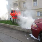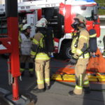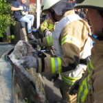 Der Abschluss der Proben des Jahres 2015 wurde mit einer großen Schauübung gefeiert. Als erstes zeigte die Feuerwehrjugend ihr können bei einem Verkehrsunfall. Eine Person wurde nach einem Zusammenstoß mit einem Fahrzeug unter diesem eingeklemmt und musste mithilfe von Hebekissen befreit werden. Da das Fahrzeug anfing zu brennen, löschte es die Mannschaft mit Schaum ab.