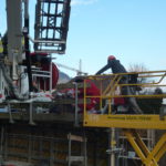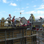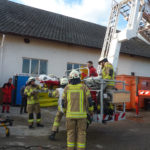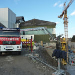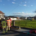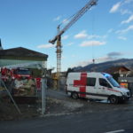 Ein Bauarbeiter wurde durch einen schwingenden Betonkübel auf einem Baugerüst schwer verletzt. Da das Rote Kreuz keine Möglichkeit hatte mit eigenen Mitteln den Patienten zu retten, wurde die Feuerwehr zur Hilfe angefordert. Der Verletzte wurde nach der Versorgung durch den Notarzt mithilfe des Steigers vom Gerüst gerettet. Aufgrund der Schwere der Verletzungen wurde durch das Rote Kreuz der Notarzthubschrauber Christophorus 8 alarmiert, um den Patient schonend ins Landeskrankenhaus Feldkirch zu fliegen.