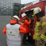 Bei der zweiten Übung durfte sich die Feuerwehrjugend Wolfurt ausruhen und auch Zuschauer sein. Dort musste eine verletzte Person unter einer Palette befreit und ein LKW mit Gefahrgut gekühlt werden.