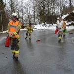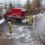 Ausgelöst durch einen Winterdienst-Traktor mussten wir zur Wolfurter Kirche ausrücken, um ausgelaufenes Hydrauliköl zu beseitigen. Die Ölspur reichte vom alten Pfarrerhaus bis über den gesamten Kirchplatz. Mit einer speziellen ölsäubernden Flüssigkeit und viel Wasser konnten wir die Verkehrsfläche schnell reinigen.