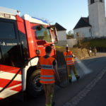 Zwei Feuerwehrmitglieder waren mit dem Kommandofahrzeug auf einer Probefahrt, als vor ihnen aus einem Landbus eine unbekannte Flüssigkeit in größeren Mengen rann. Dem Geruch nach konnte erkannt werden, dass es sich um Diesel handelt. Der weiter ausrinnende Treibstoff wurde mit einer Kunststoffbox aufgefangen.