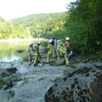 Ein Mann erlitt an der Bregenzer Ache einen Kreislaufstillstand und musste von anwesenden Badegästen reanimiert werden. Der angeforderte Rettungsdienst konnte die weiteren Maßnahmen übernehmen, musste jedoch für den Abtransport Spezialkräfte anfordern. Da der Zugang zum Patient nur über einen sehr steilen und rutschigen Waldweg führte, wurde die Feuerwehr alarmiert, um mit einer Spezialtrage und Seilgeländern den Transport zum naheliegenden Parkplatz zu ermöglichen.