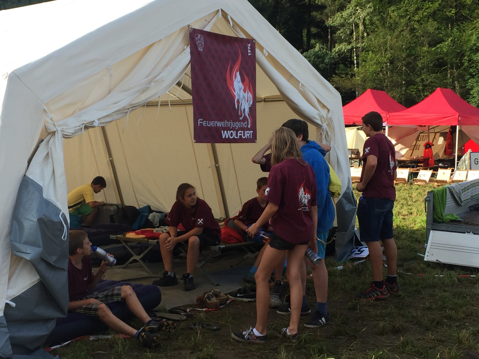 Das alle zwei Jahre stattfindende Jugendzeltlager wurde heuer in Götzis durchgeführt. Am Freitagmittag ging es los, die Feuerwehrjugend traf sich mit den Betreuern beim Feuerwehrhaus, hier wurde noch alles verladen und dann ging es mit dem VF und dem MTF nach Götzis. Kaum angekommen stellten wir schon unser Zelt auf. Bei unserem Zeltbereich waren auch die anderen Hofsteiggemeinden (Bildstein, Lauterach und Schwarzach) angesiedelt, somit hat es sich angeboten noch ein Gemeinschaftszelt aufzustellen, wo wir gemeinsam essen und spielen konnten. Nachdem wir die Zelte aufgestellt hatten war es schon bald wieder Zeit fürs Abendessen. Es gab eine Lagereröffnung mit Fahnenhissung, danach hatten wir Zeit beim Gemeinschaftszelt zu spielen und auch beim Lagerfeuer zu sitzen.