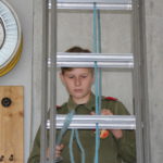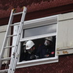 Die Feuerwehrjugend Lauterach musste eine Person aus dem 2. OG eines Gebäudes retten. Dazu gingen sie mit der zweiteiligen Schiebeleiter vor und seilten die Person ab.