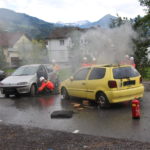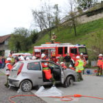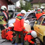 Er teilte die Feuerwehrjugend Schwarzach zur Personenrettung ein, diese befreite die unter dem Auto eingeklemmte Person mittels Hebekissen. Die Feuerwehrjugend Wolfurt musste mit dem Hydraulischen Rettungsgerät die Türe des Fahrzeuges öffnen und konnte somit zwei Personen aus dem Fahrzeug holen.