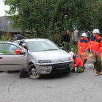 Am Übungsort angekommen fanden wir einen Verkehrsunfall mit zwei Fahrzeugen vor. Der Einsatzleiter erkundete die Lage und stellte fest, dass eine Person unter einem PKW eingeklemmt ist und bei dem anderen Fahrzeug durch den Aufprall kein Öffnen der Türen möglich ist.