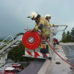 Auf dem Dach eines Firmengebäudes in Lauterach kam es im Bereich der Photovoltaikanlagen zu einem Brand. Beim Eintreffen der Feuerwehren konnte das Feuer bereits von den anwesenden Mitarbeitern mit Feuerlöschern bekämpft werden. Da Glutnester nicht ausgeschlossen werden konnten, musste mit Werkzeug die Dachoberfläche geöffnet und erneut abgelöscht werden.