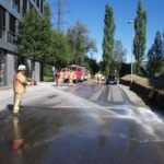 Aus einem Sattelschlepper traten auf eine Länge von ca. 30 Metern mehrere Liter Diesel aus. Da dies zur Mittagszeit passierte, und somit viel Verkehr auf den Straßen war, wurde unsere Hilfe dringend benötigt. Mit mehreren Kanistern Bindemittel konnten wir die erste Gefahr bannen und die Straße anschließend reinigen.