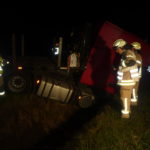 Austretender Diesel aus dem Kraftstofftank musste mit einer Gewässersperre und Bindemittel vor weiteren Umweltgefährdungen gestoppt werden. Noch in der Nacht erfolgte die Bergung des Gespanns mit einem Kran und Seilwinden. Die Aufräumarbeiten gestalteten sich wegen des weichen Bodens und der Dunkelheit schwierig, konnten jedoch nach zwei Stunden abgeschlossen werden. In Zusammenarbeit mit mehreren Fremdfirmen konnten die notwendigen Handgriffe sehr gut aufgeteilt werden.