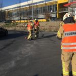 Die Brandmeldeanlage wurde durch einen Druckknopfmelder ausgelöst. Bei der Erkundung konnte aber nichts weiteres festgestellt werden. Somit rückte ein Teil der Mannschaft wieder zur Unterstützung der Kameraden aus, die noch mit der Ölspur beschäftigt waren. Die restliche Mannschaft konnte ins Feuerwehrhaus einrücken.