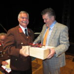 Bezirksvertreter Reinhard Karg nahm die Ehrungen seitens des Landes und des Landesfeuerwehrverbandes vor. Er konnte den Jubilaren die Feuerwehrmedaillen in Bronze und Silber verleihen. Unsere Bürgermeister bedankte sich und überbrachte den Jubilaren ein Ehrengeschenk der Marktgemeinde Wolfurt.
