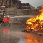 Die Feuerwehrjugend Schwarzach, Kennelbach und Bildstein fanden als Übungsszenario einen Brand vor. Das brennende „Gebäude“ wurde abgelöscht und mit einem Hydroschild weitere geschützt.