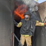 Es gab mehrere Durchgänge, bei denen wir Flashover erleben und den Brandverlauf in geschlossenen Räumen sehen konnten. Mit der Gewöhnung an die hohen Temperaturen wird man auf den Ernstfall vorbereitet.