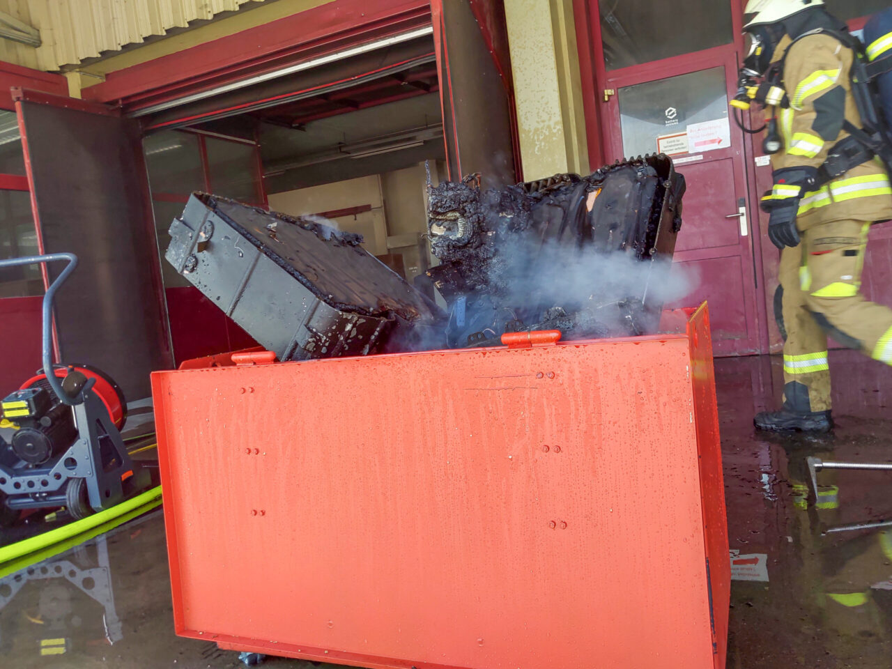 Wir wurden zu einer Verpuffung in einem Prüfraum für Batterien im Wolfurter Gewerbegebiet alarmiert. Vorort stellten wir eine starke Rauchentwicklung fest und erhöhten die Alarmstufe auf F4, dies bedeutet, dass die im Alarmplan hinterlegten Feuerwehren Bildstein, Lauterach und Bregenz-Stadt mit der Drehleiter zur Unterstützung nachalarmiert werden. Unter Atemschutz wurden die betroffenen Batterien gekühlt und ins Freie gebracht. In den nachgeforderten Mulden des LFV und der Feuerwehr Dornbirn, wurden diese gelagert und zur fachgerechten Entsorgung geführt. Aufgrund der starken Rauchentwicklung, war das komplette Gebäude stark verraucht und wurde von uns mit mehreren Hochleistungslüftern entraucht. Die Mitarbeiter konnten das Gebäude mehrere Stunden nicht betreten, der komplette Einsatz dauerte über 6 Stunden.