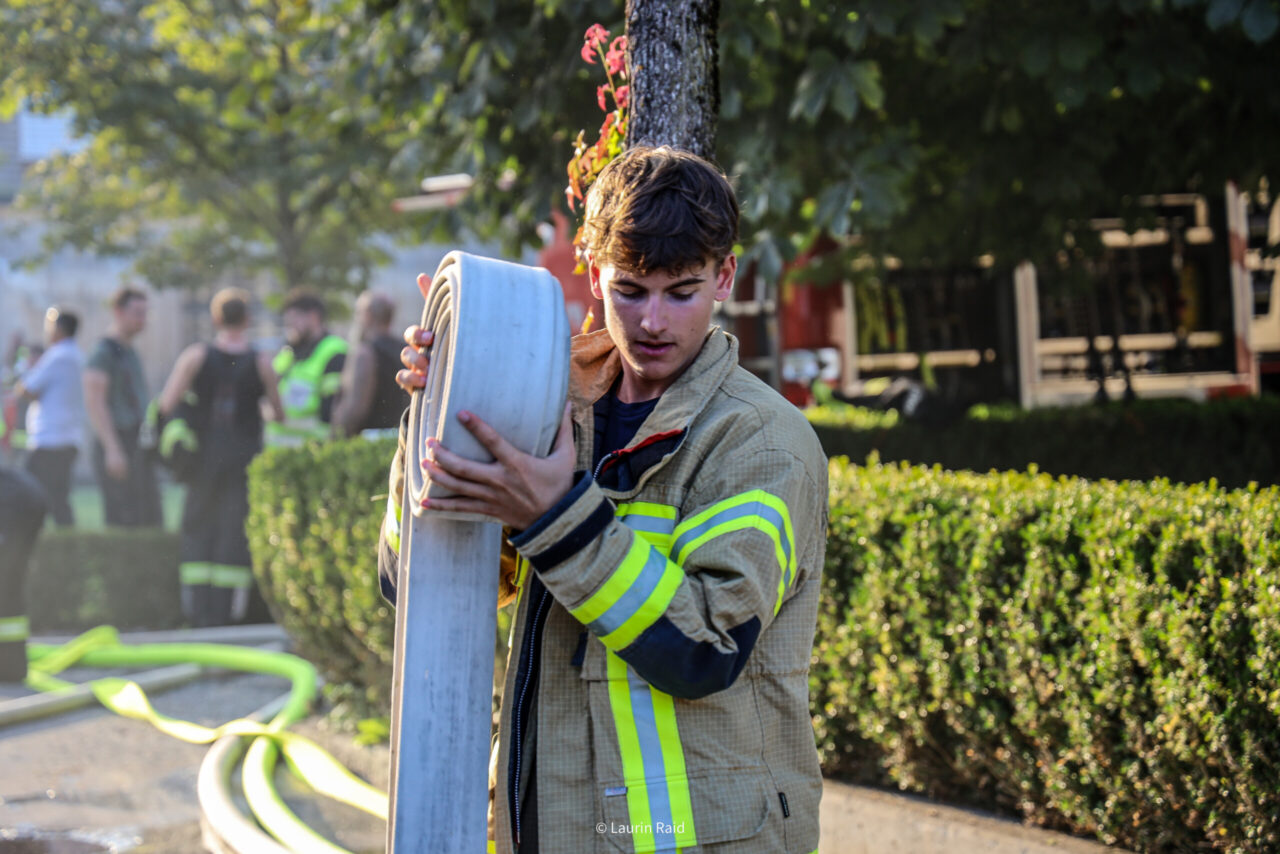 Unsere Mannschaft war rund sieben Stunden im Einsatz, bis die letzten Glutnester abgelöscht waren und „Brand aus“ gegeben werden konnte.