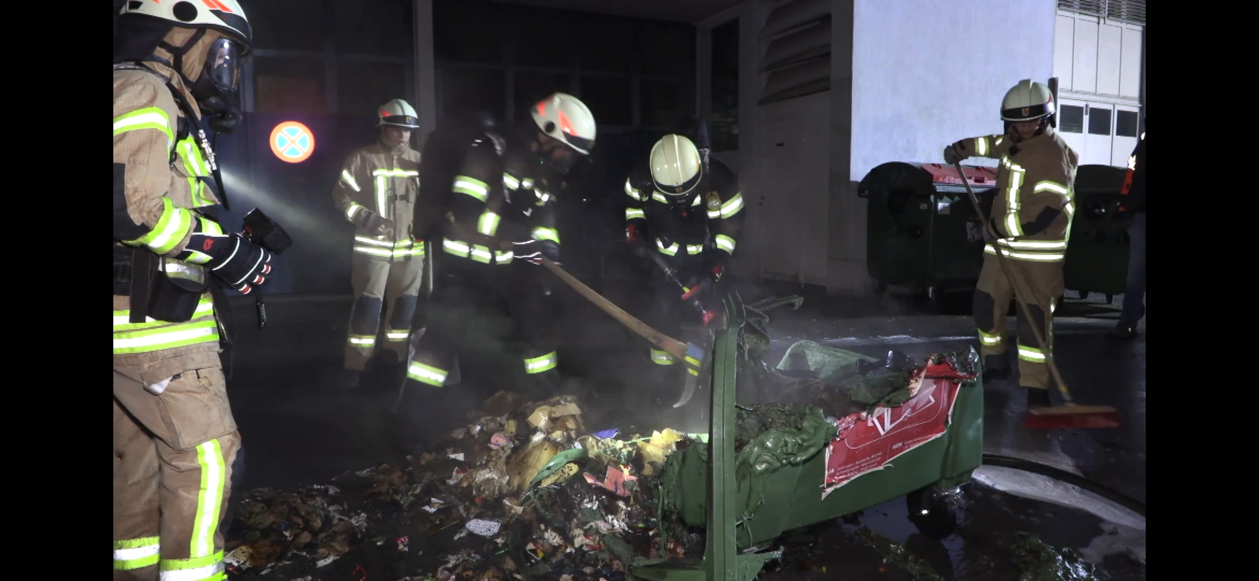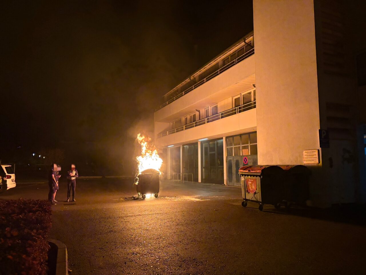 Dank aufmerksamer Passanten, die den brennenden Container von der Hausfassade wegschoben, konnte ein Übergreifen auf weitere Container sowie auf die Fassade verhindert werden.