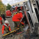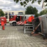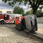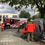 Nachdem das Auto gesichert war konnten die Personen über den Kofferraum und die Windschutzscheibe aus dem Auto geborgen werden. Zusätzlich wurde der Brandschutz mit einem Schaumrohr sichergestellt.