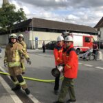 Die Kreisübung war in zwei Stationen eingeteilt. Die Feuerwehrjugend Lauterach und Schwarzach mussten ein Feuer löschen und Personen aus einem verrauchten Gebäude retten.