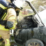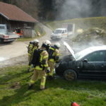 Auch der zweite Einsatz an diesem Tag war ein Brandereignis in Wolfurt. Im Frickenescherweg fing ein Fahrzeug an zu brennen. Bereits vor Eintreffen der Feuerwehr wurde das Fahrzeug mit einem Bagger aus dem Carport gezogen und mit einem Handfeuerlöscher abgelöscht.