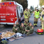 Um 16:00 Uhr fuhr dann die aktive Mannschaft der Ortsfeuerwehr zum Übungsobjekt an. Aufgrund eines Brandausbruches im Keller kam es zu einer starken Verrauchung im gesamten Stiegenhaus. In weiterer Folge geschah an der Kreuzung aufgrund von Unachtsamkeit zu einem Unfall in den zwei PKW verwickelt waren.