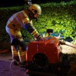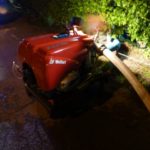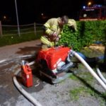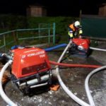 Um genügend Wasser für den Werfer auf dem Steiger aufzubringen, wurde als zusätzlicher Einspeiser für den Tank das LF mit Pumpe und Schlauchanhänger angefordert.