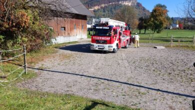 Einsatz-Nr 105 27.10.2021 13:24 Lauterach Bundesstraße Brand im Stallgebäude > Sattelkammer