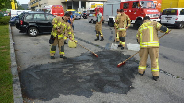Es gab auf einem Parkplatz einen Austritt von Hydrauliköl. Die Feuerwehr Wolfurt rückte mit zwei Fahrzeugen aus und konnte mittels…