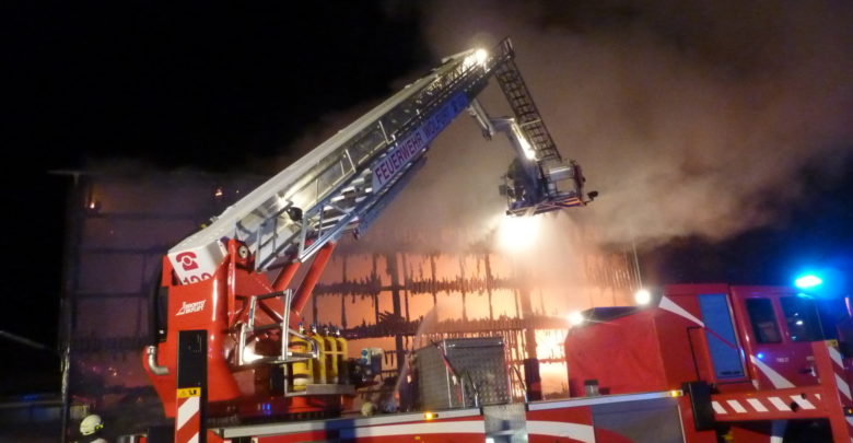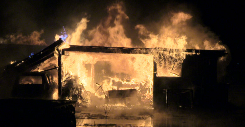 Was nur wenige Minuten vor Mitternacht als Brand eines Fahrzeugs in einer Garage alarmiert wurde, entwickelte sich sehr schnell zu…
