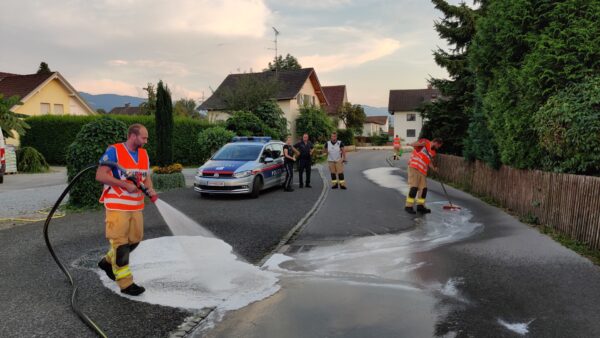 Beim Auflieger eines Sattelschlepper kam es zum Defekt an einer Hydraulikleitung und dem Austreten großer Mengen Hydrauliköl. Die rutschige Eigenschaft…