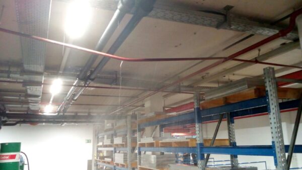 Durch ein vom Stapler heruntergerissenes Sprinklerrohr löste die Brandmeldezentrale aus und alarmierte die Feuerwehr. Da seitens der Feuerwehr keine Tätigkeiten…