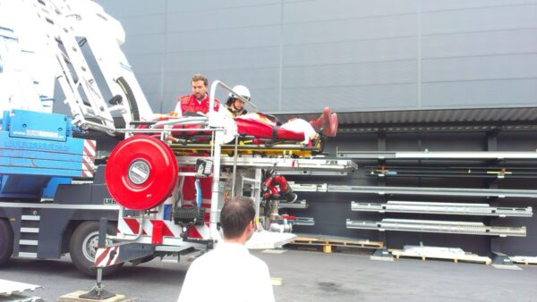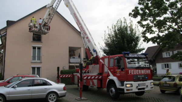 Der Notarzt forderte zur Unterstützung bei der Rettung eines Patienten vom Dach die Feuerwehr Wolfurt mit der Teleskopmastbühne an. Die Maschinisten des…