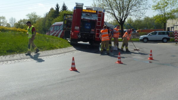 Bei einem Verkehrsunfall kam es zu einem Austritt von Kühlflüssigkeit. Die Aufgabe der Feuerwehr bestand im Binden der Flüssigkeit und dem Regeln…