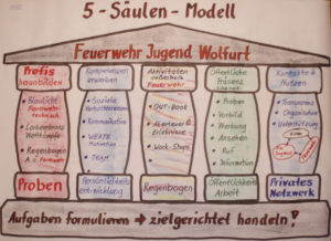 Im Jahr 2010 entwickelten wir ein innovatives Ausbildungskonzept, das auf fünf zentralen Säulen basiert. Dieses Modell bildet die Grundlage für unsere Proben und Aktivitäten.