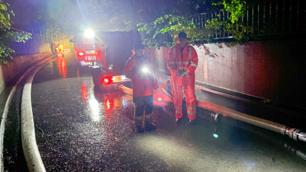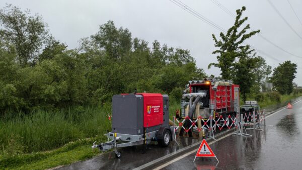 Durch den starken Regenfall drang Wasser in eine Werkstatt. Die hauseigene Tauchpumpe reichte für diese Wassermenge nicht mehr aus. Wir…