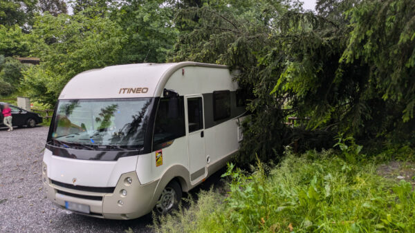 Wir wurden von einem unserer Feuerwehrkameraden informiert, dass auf dem Parkplatz bei der Alten Schmiede ein Baum auf ein Wohnmobil…